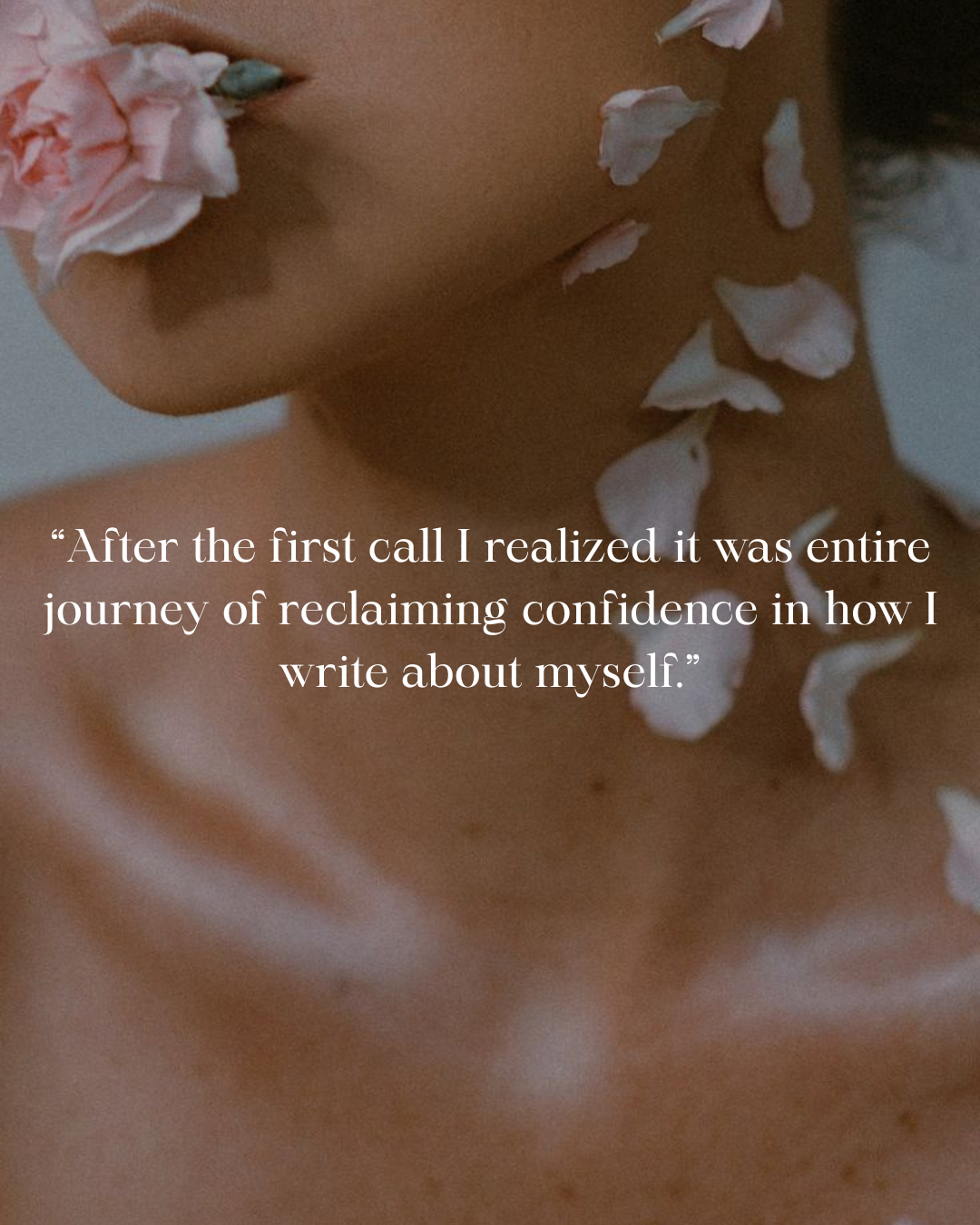 “She helps you see your work through fresh eyes, beyond your own blind spots, so your message feels clear, powerful, and fully aligned. What I expected was for this to be a container of convenience, but after the first call I realized it was an entire journey of reclaiming confidence in how I write about myself.”